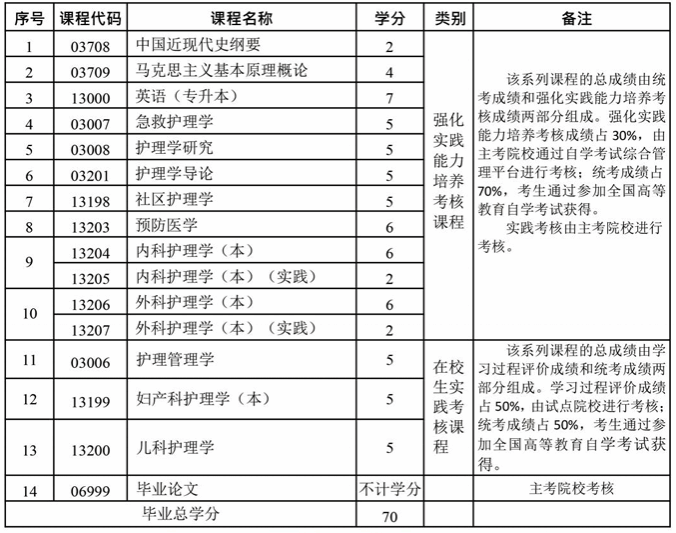 1. 强化实践能力培养课程:总成绩由统考成绩和强化实践能力培养考核成绩两部分组成。强化实践能力培养考核成绩占 30%,由主考院校通过自学考试综合管理平台进行考核;统考成绩占 70%,考生通过参加全国高等教育自学考试获得。实践考核由主考院校进行。